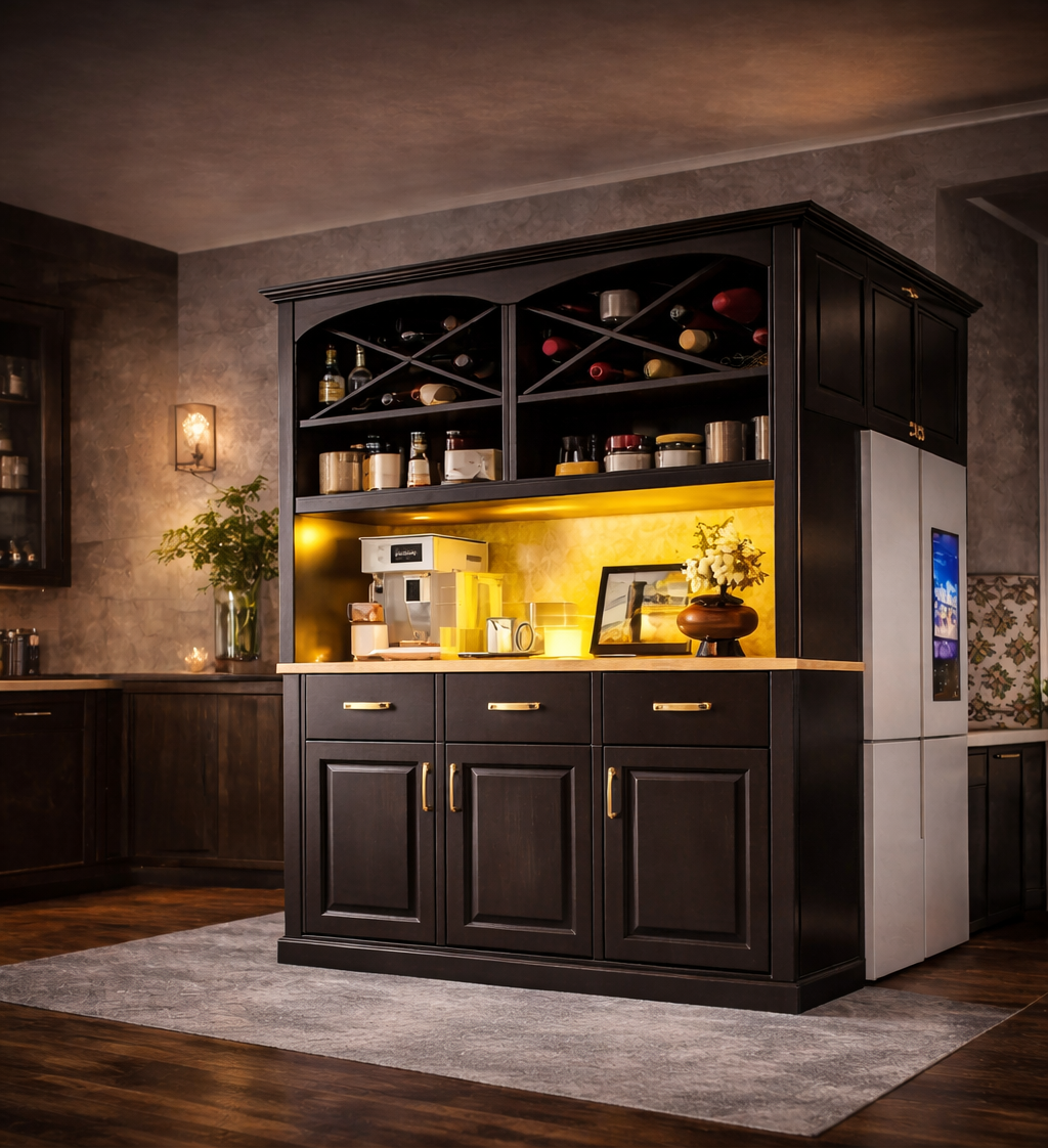 Chaque pièce Maison Essentielle est pensée comme un élément central de l’intérieur. Nos meubles de rangement, buffets, garde-manger et meubles bar s’intègrent naturellement dans la cuisine, la salle à manger ou le salon, en apportant une présence esthétique forte sans jamais compromettre l’usage quotidien. Les lignes sont épurées, les volumes équilibrés et les finitions soignées, afin de répondre aux exigences des intérieurs modernes et haut de gamme.
